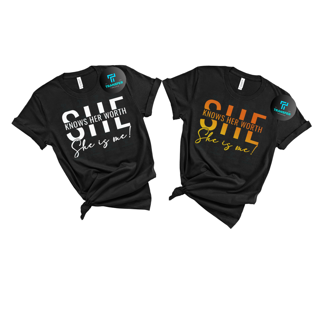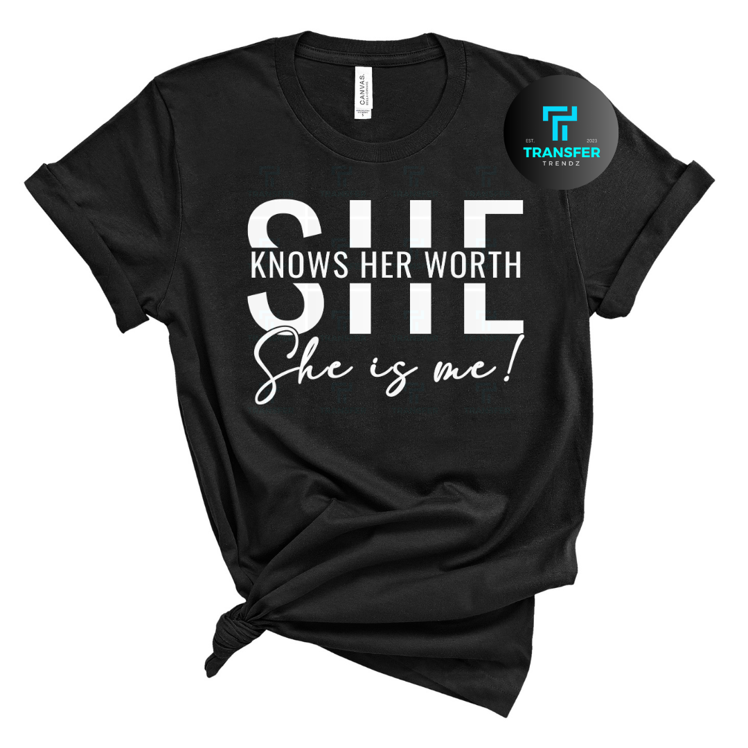Show off your confidence with our "She Knows Her Worth" t-shirt. Made from high-quality materials, this shirt is the perfect blend of comfort and style. Let everyone know that you value yourself and your worth with this playful and unique design. (You go, girl!)